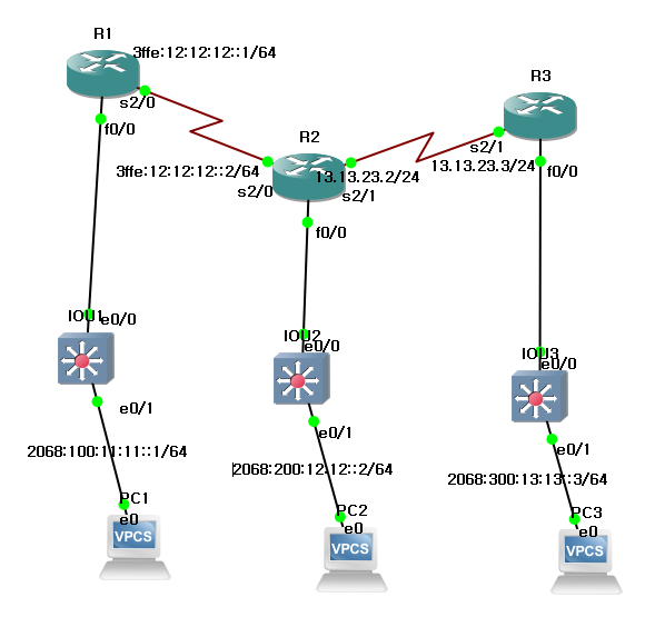 ip 2068:200:12:12::2/64 2068:200:12:12::2
