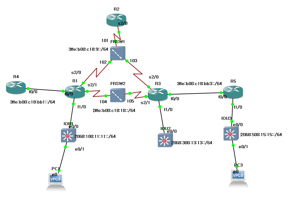 frame-relay map ipv6 3ffe:b00:c18:9::1 201 broadcast