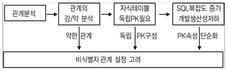 식별자 관계를 파악하는데에 있어서 중요한 한가지는 비식별자관계를 파악하는 것이다. 비식별자관계를 파악할때에 있어서 다음과 같은 흐름에 따라 선정한다면 합리적으로 비식별자관계를 설정할 수 있다.