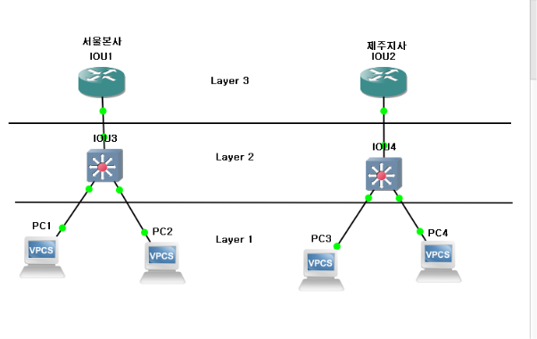PC1과 PC2에서 PC3과 PC4로 PING이 제대로 가는 것을 확인 하였다, 반대로 PC3과 PC4에서 PC1과 PC2로의 PING이 가는 것도 확인 하였다.