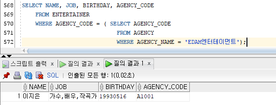 WHERE AGENCY_NAME = 'EDAM엔터테이먼트');