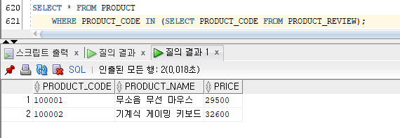 ㄴ) 다중 행 서브 쿼리: 2건 이상의 행을 반환