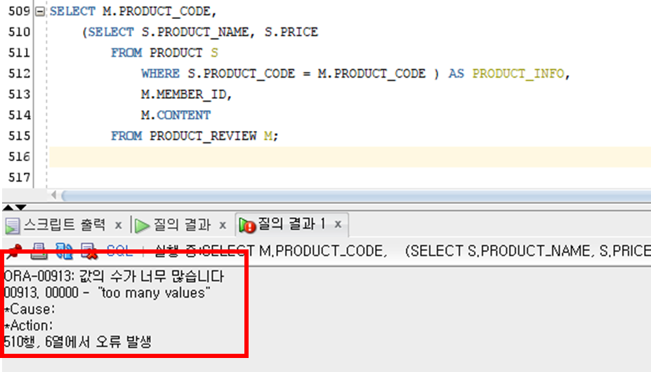| 다중 컬럼(Multi Column) 서브쿼리 | 서브쿼리가 여러 컬럼의 데이터를 반환 |