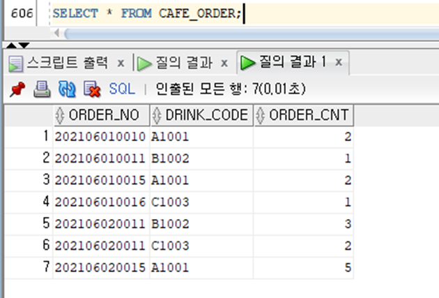 SELECT * FROM CAFE_ORDER;