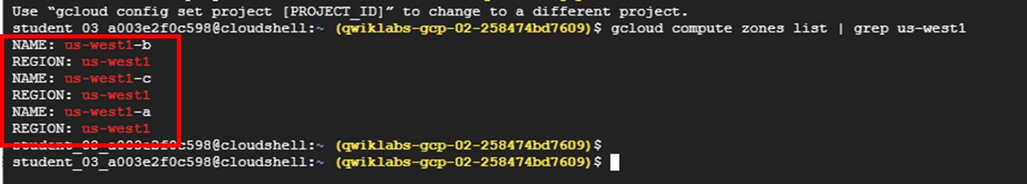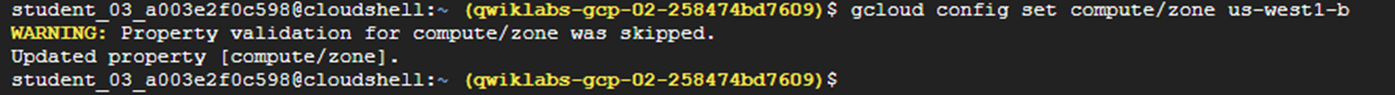 다른 zone 에 기본설정 셋팅(이후 VM 인스턴스를 생성할 때, 명시적으로 영역을 지정하지 않는 경우 이 설정이 적용되어 us-west1-b에 VM이 생성)