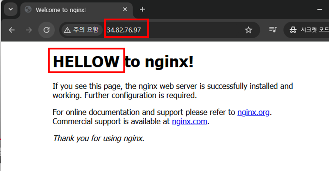 my-vm-1 의 external IP 클릭 시 변경된 내용 확인 가능