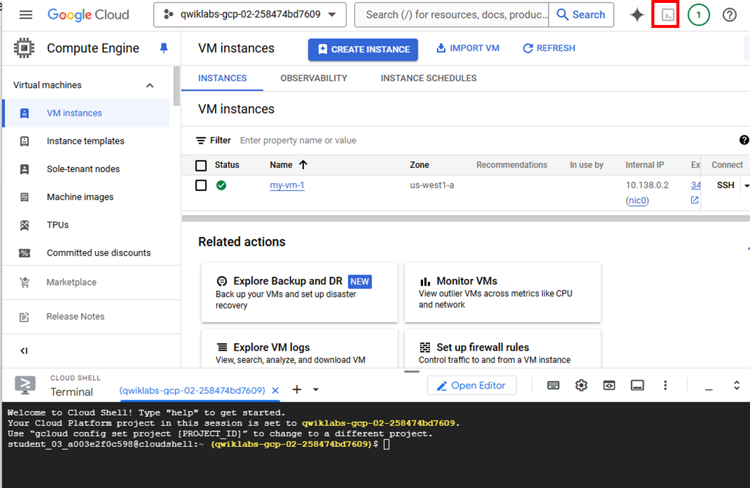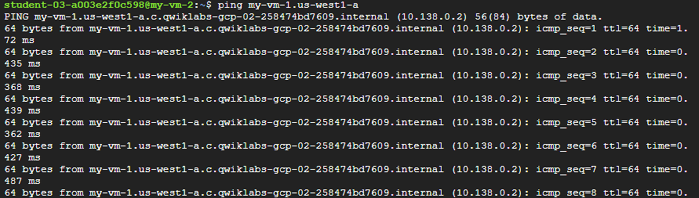 해당 ping을 통해 my-vm-1.us-Zone 1.c.PROJECT_ID.internal 의 정보를 확인할 수 있음
