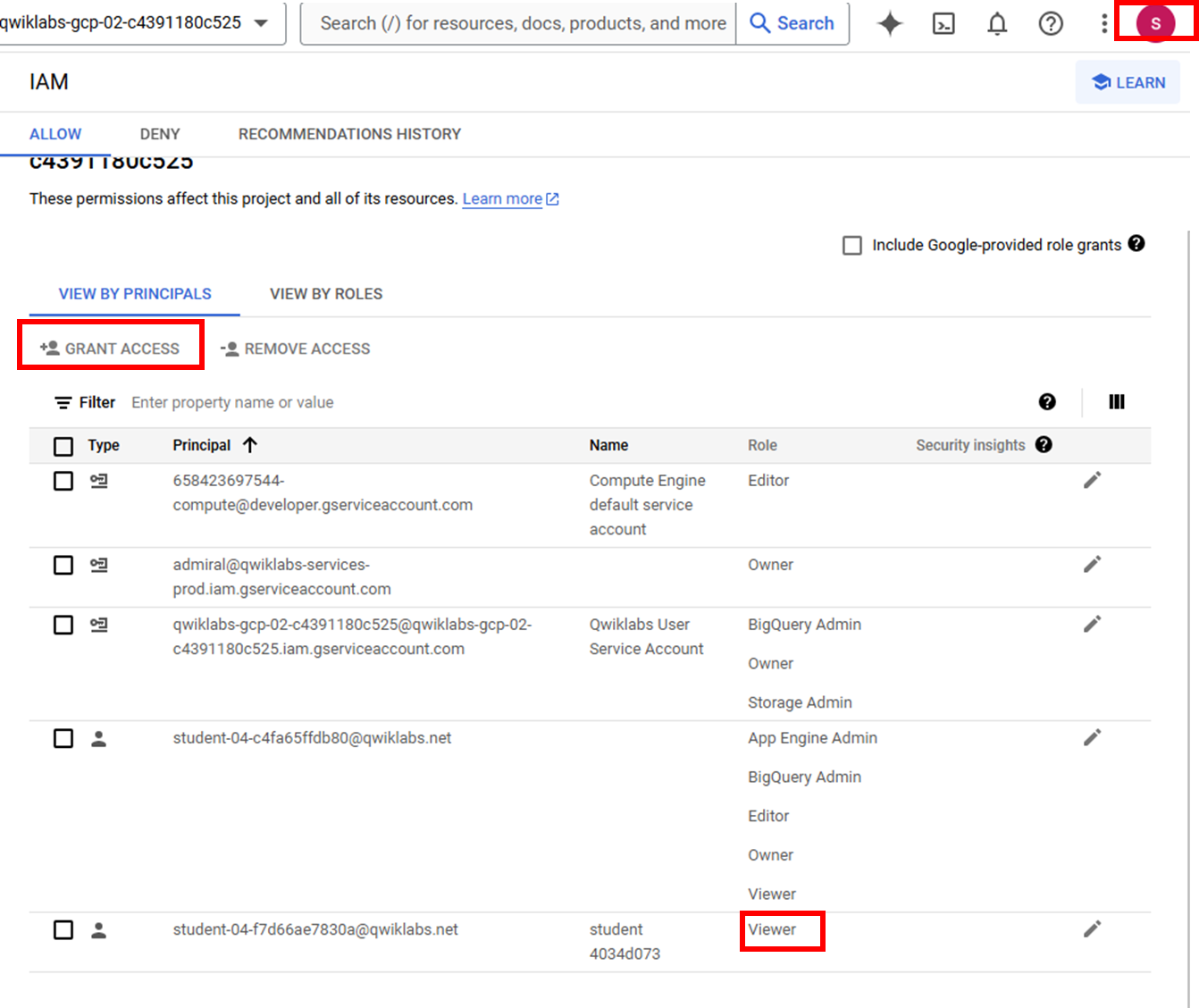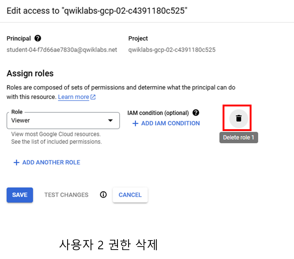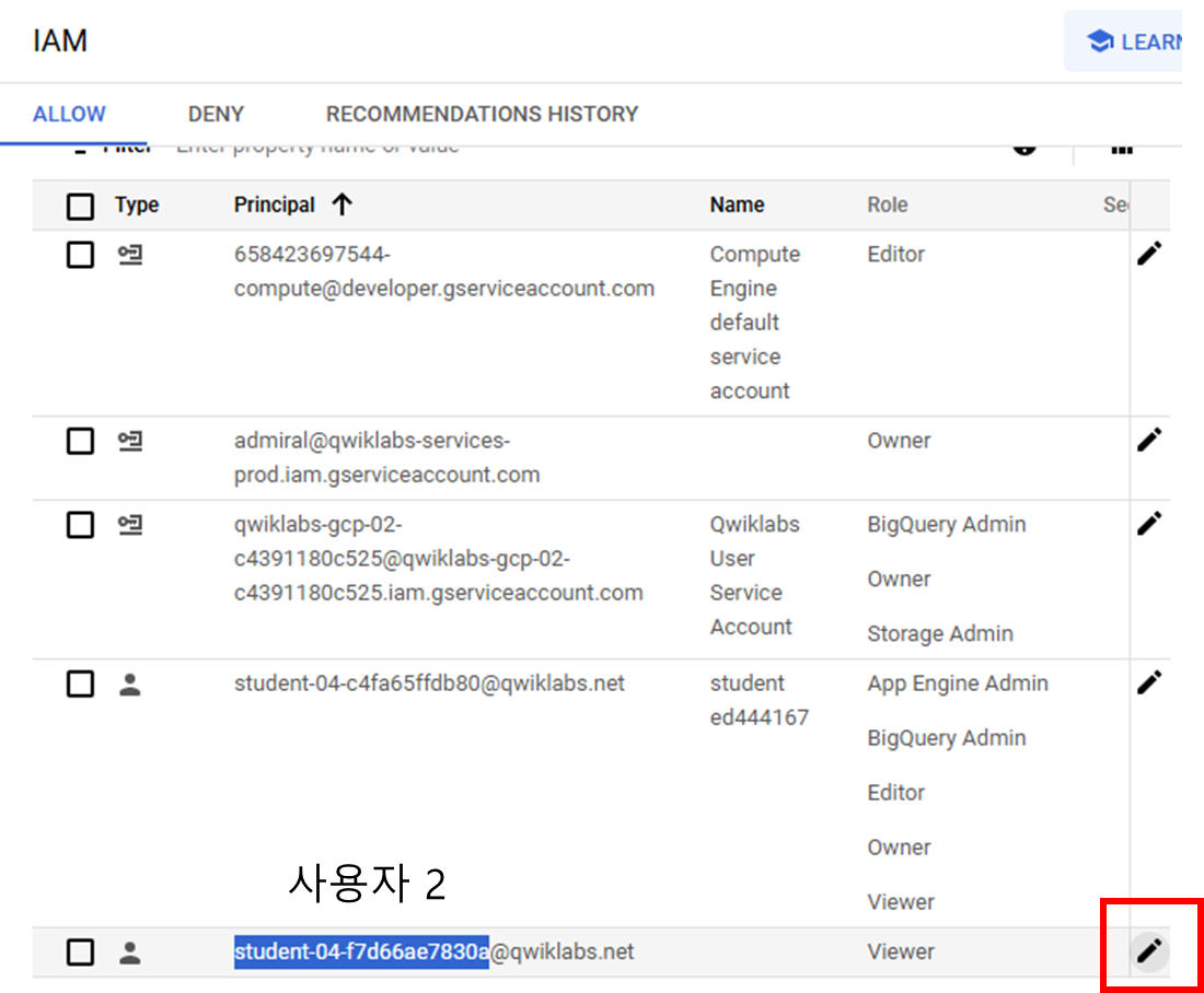 계정2에는 프로젝트를 볼 수만있는 뷰어 권한을 부여