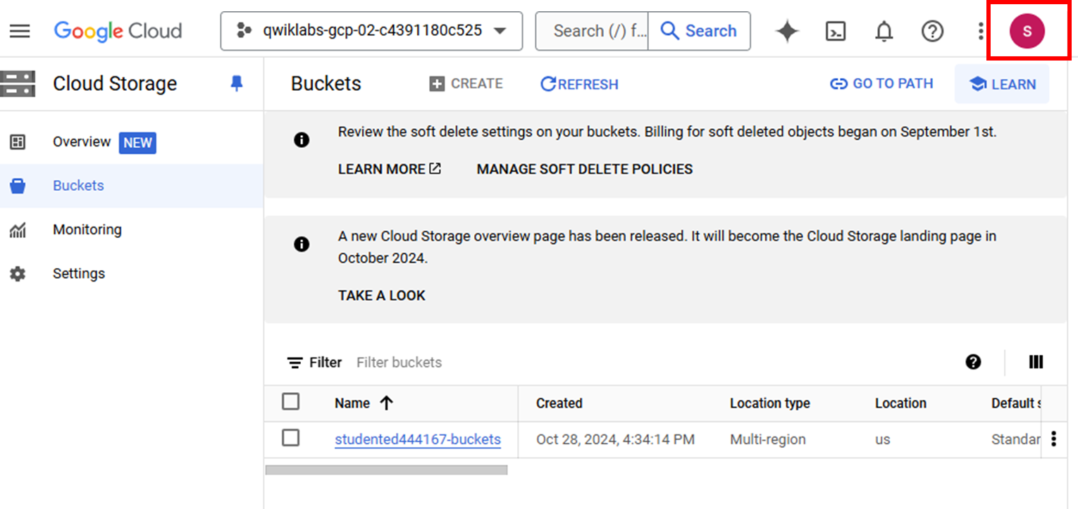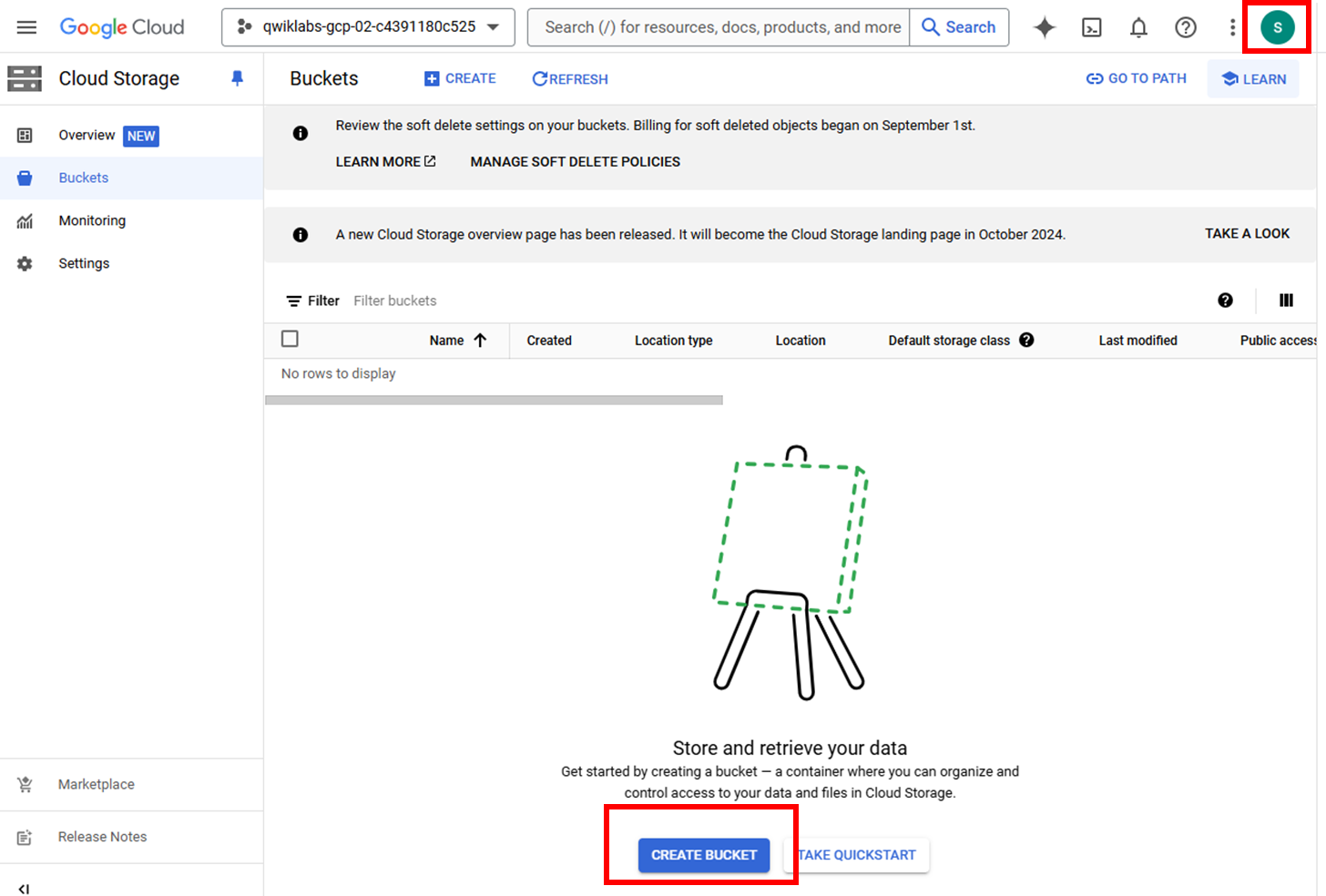 Task 2. Prepare a Cloud Storage bucket for access testing