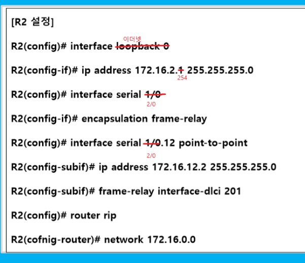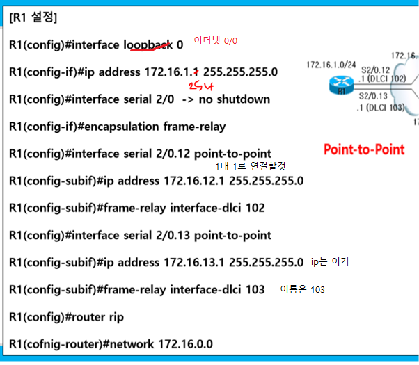 int s2/0.12 서브 인터페이스(하위no shut안함 선언하는 순간 자동으로 켜짐. 논리회선(가상회선))