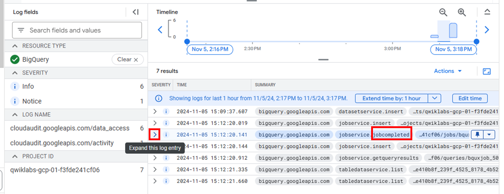 Task 6: Viewing the logs in BigQuery