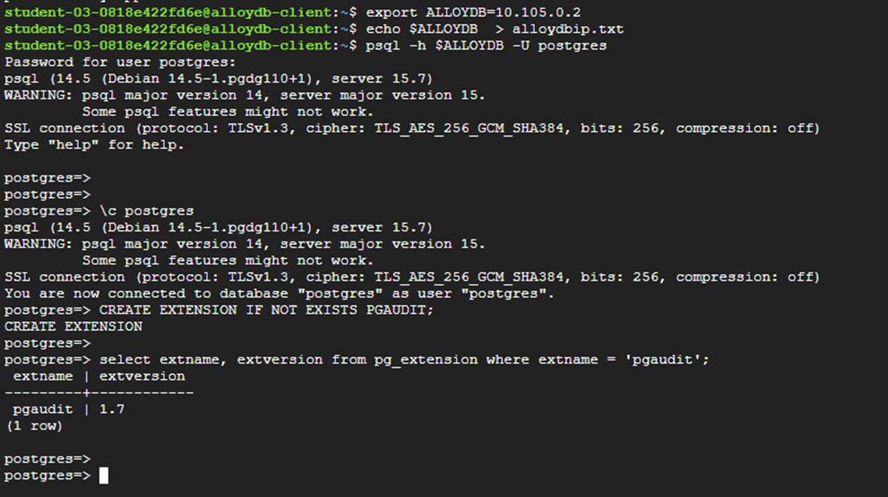 | CREATE EXTENSION IF NOT EXISTS PGAUDIT; |