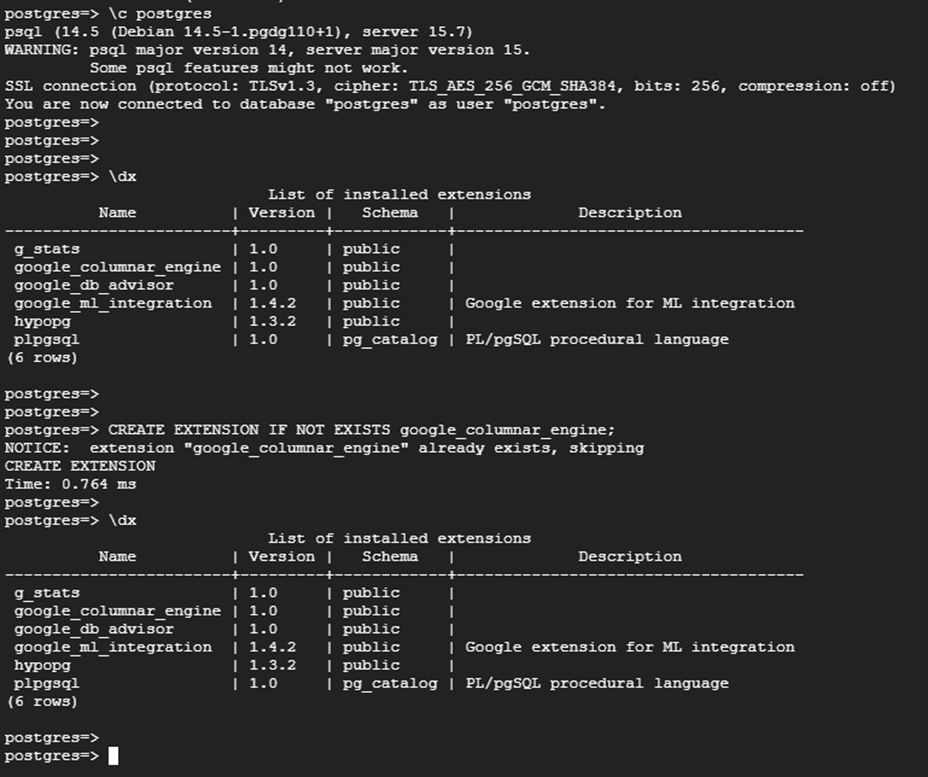 | CREATE EXTENSION IF NOT EXISTS google_columnar_engine; |