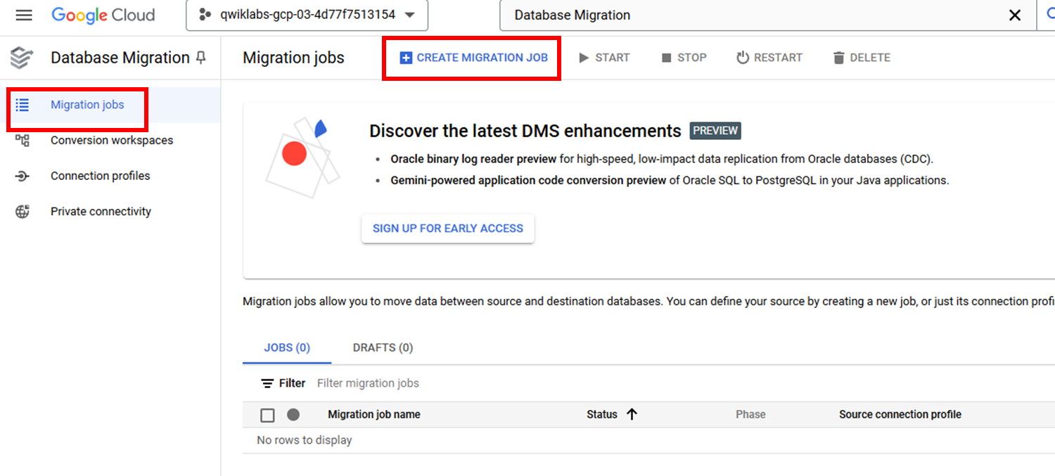 Task 3. Create and start a continuous migration job