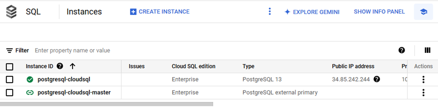 Note that postgresql-cloudsql is now a stand-alone instance for reading and writing data.