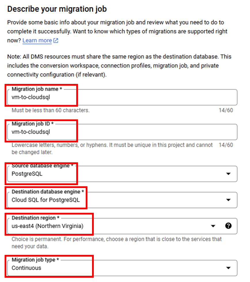 In this lab, you migrate a stand-alone PostgreSQL database (running on a virtual machine) to Cloud SQL for PostgreSQL using a continuous Database Migration Service job and VPC peering for connectivity.