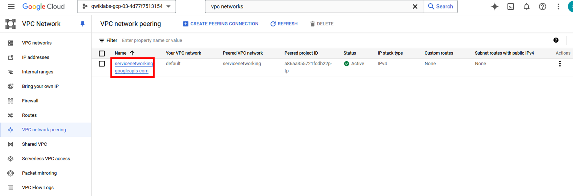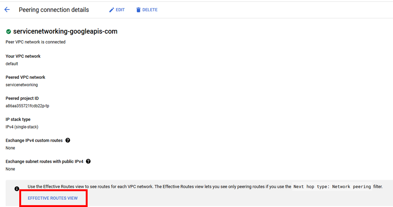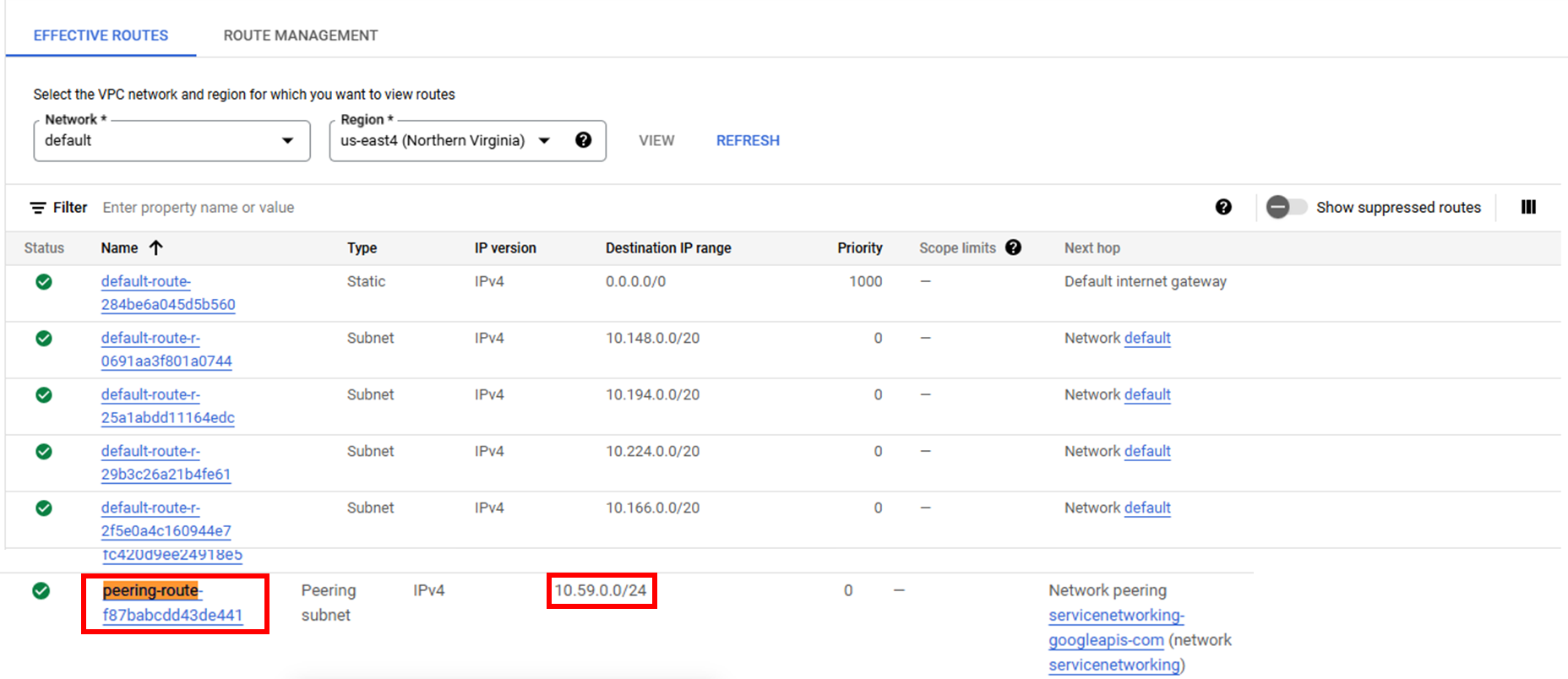 In the Destination IP range coloum ,copy the IP range (e.g. 10.107.176.0/24) next to peering-route-xxxxx... route.