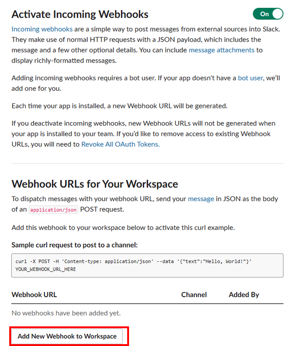 add new webhook to worksapce 클리