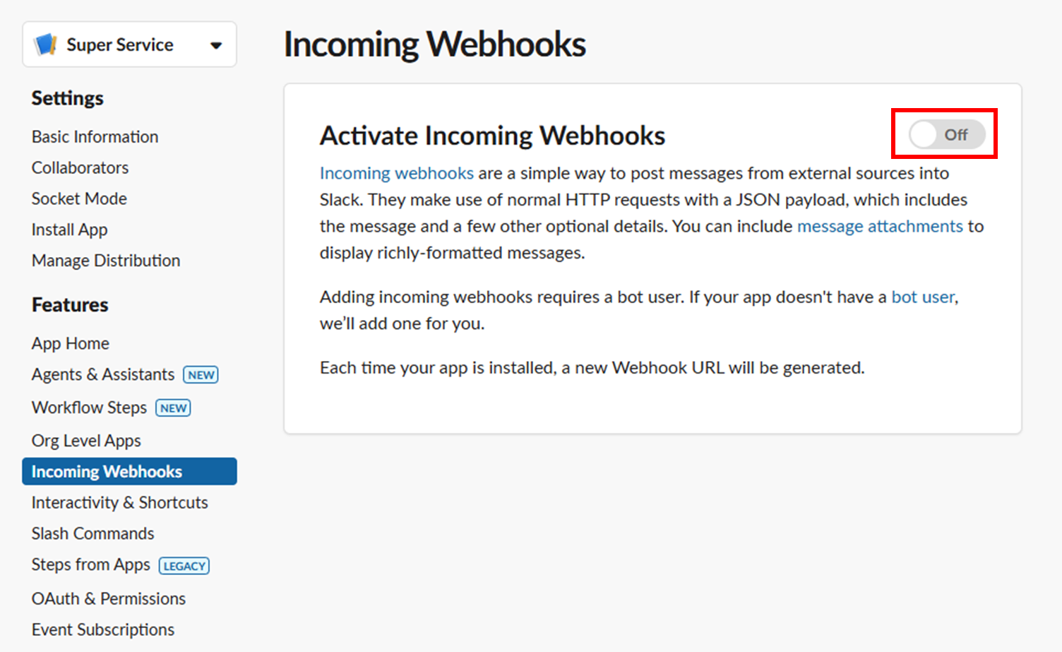 webhook 을 생성해야 한다.
