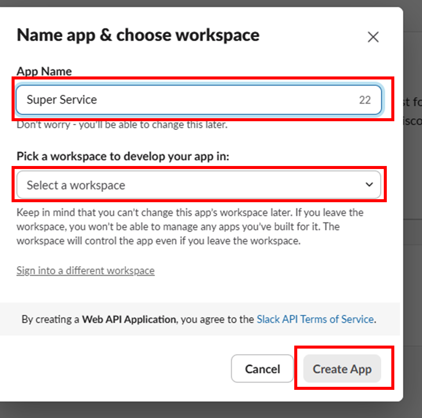 app name 설정 및 workspace 선택