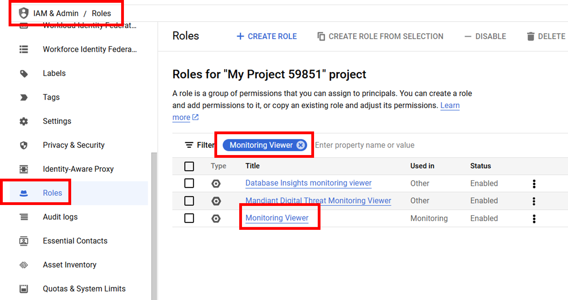 iam> roles > monitoring viewer 확인하면 역할 중 stackdriver.resourcemetadata.list 라는 게 있음