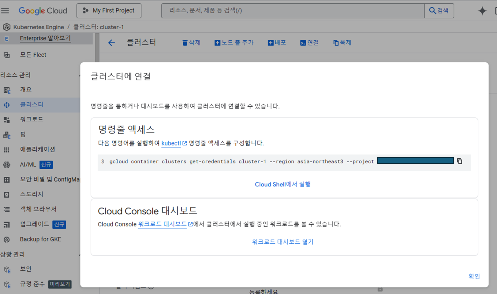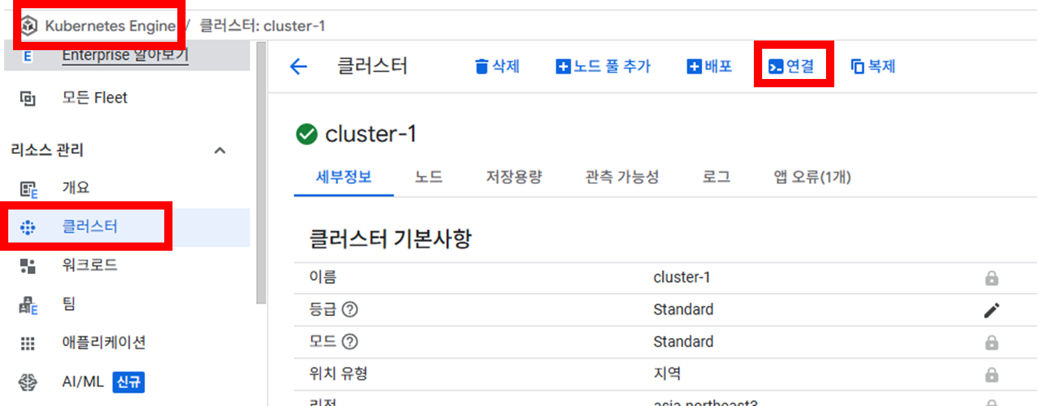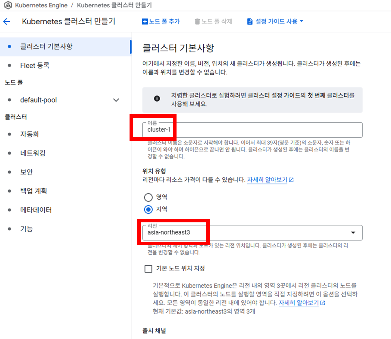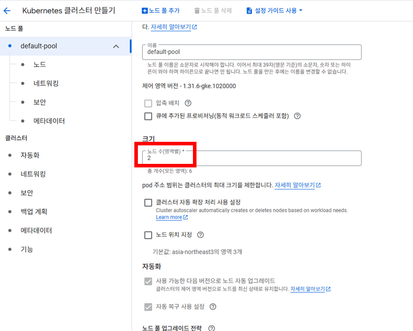 노드수는 2, asia-northeast3 영역에는 a, b, c zone이 있어서 총 노드수가 6개가 됨