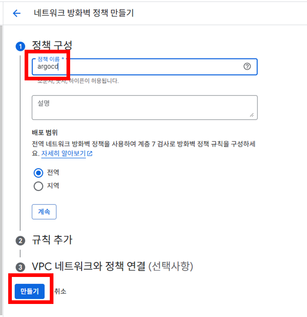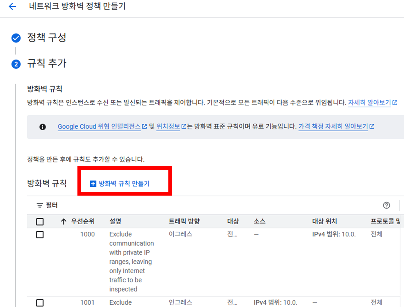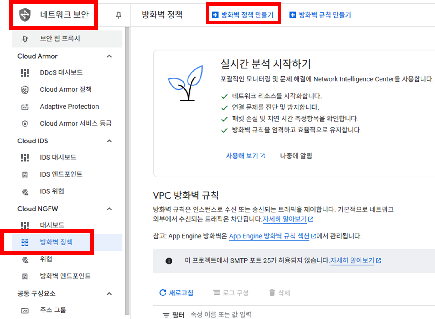 네트워크 보안 > 방화벽 정책 > 방화벽 정책 만들기