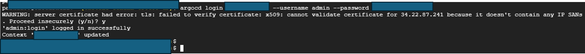 → 만든 Argo CD 서버는 **자체 서명된 인증서(self-signed)**를 사용하고 있는데, 그 인증서에 도메인 이름은 있어도 IP 주소가 없어서 TLS 검증이 실패한 상황