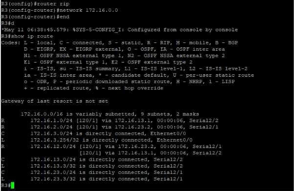 show ip route를 치면 R 172.16.1.0/24 [120/1]이 나오는데,