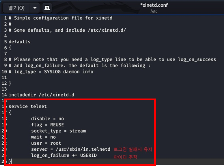 슈퍼데몬 conf 파일을 열어 다음의 내용을 추가한다.