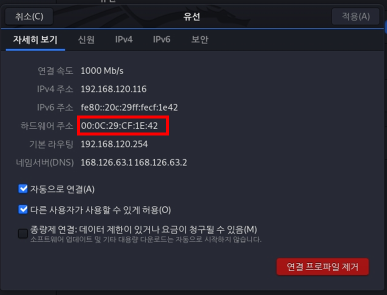 공격시 바뀐 맥어드레스를 확인 할 수 있다.