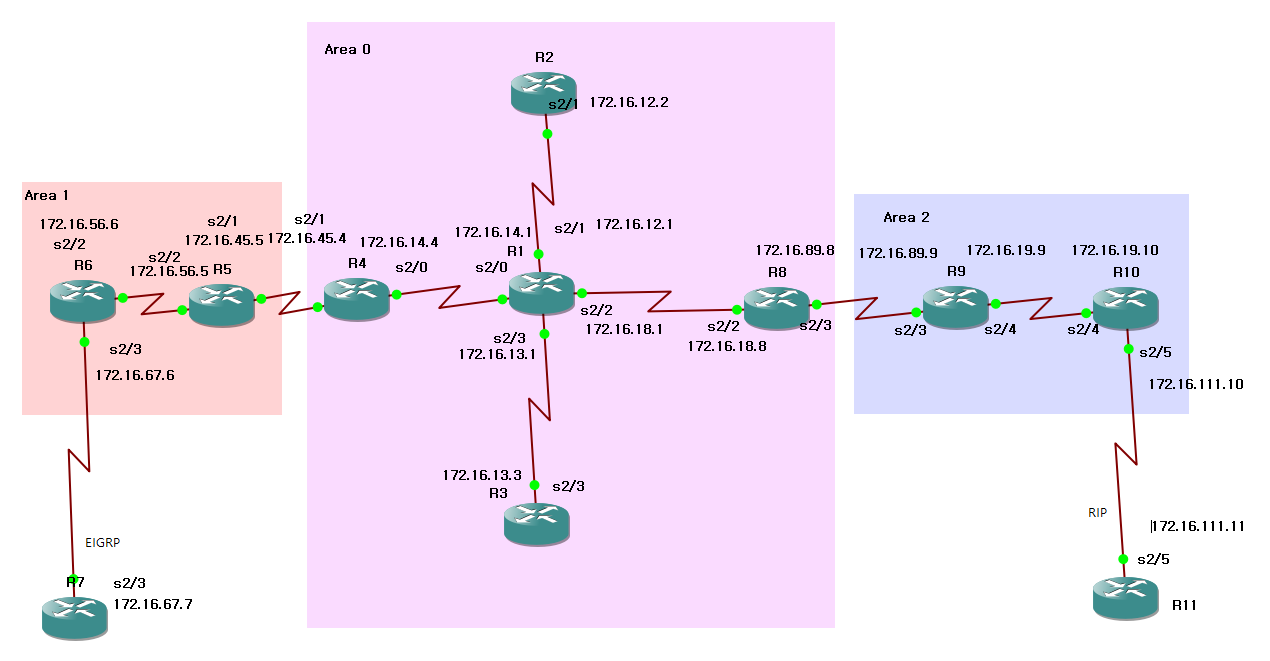 network 172.16.67.0 0.0.0.255 area 1